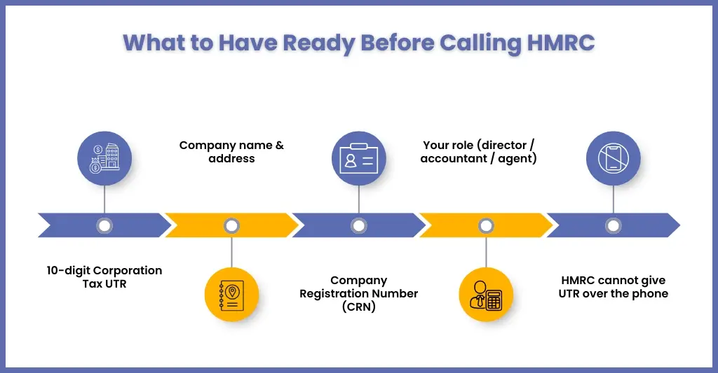 • Have your 10‑digit Unique Taxpayer Reference (UTR) ready, as HMRC cannot tell you your UTR over the phone.