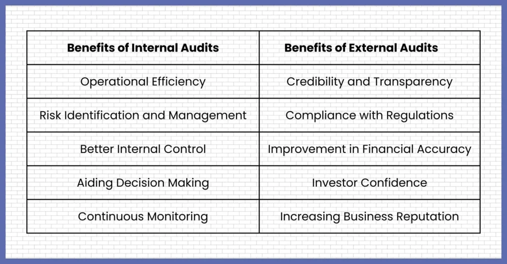 Both external and internal audits have the potential to bring countless benefits for your business clients. Both types of audits complement each other in assessing and improving business operations.