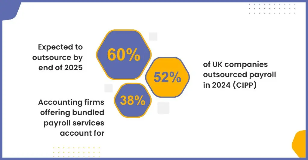 • 38% of accounting firms now offer outsourced payroll as a bundled service to their clients (AccountingWeb UK Survey 2024).